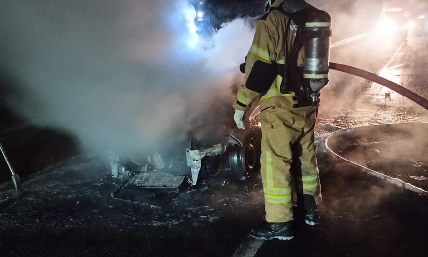 Um carro ficou destruído após pegar fogo na noite desta terça-feira, dia 12 na BR-101, em Jaguaruna. O incêndio aconteceu por volta das 21h40, no km 353 da rodovia.