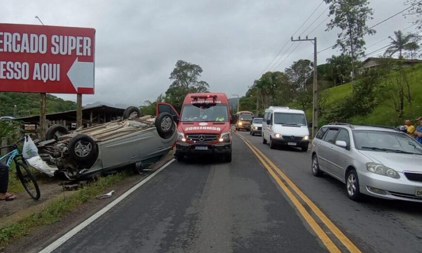 Colisão entre carro e moto deixa vítima ferida na SC-390 em Tubarão