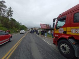 Um acidente de trânsito envolvendo uma motocicleta Honda CG, e um veículo Chevrolet Onix, com placas de Pedras Grandes, na Rodovia SC-390, na Guarda Margem Direita em Tubarão. O Corpo de Bombeiros Militar foi acionado por volta das 13h30, desta terça-feira, dia 28. A guarnição chegou no local e encontrou o motociclista de 30 anos, ferido.
