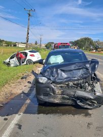 Um acidente de trânsito foi registrado neste sábado, dia 20, por volta das 09h15, na Rod Claudino Abel Botega, bairro Morro Bonito em Jaguaruna. Uma colisão envolvendo dois carros um veículo Onix placa de Tubarão haviam três ocupantes, a condutora de 72 anos, ela estava dentro do veículo e relatava dor na região da cervical e tórax. Foi nessesario realizar a retirada da porta para a extração da vítima que foi encaminhada ao hospital de Caridade de Jaguaruna.