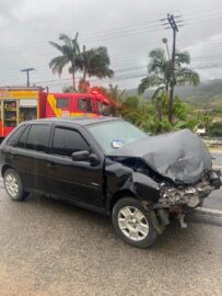 Uma mulher de 49 anos ficou presa às ferragens após uma colisão entre um Toyota Yaris e um Volkswagen Gol na tarde deste sábado, dia 22, na Rodovia SC-370, bairro Travessão, em Braço do Norte. Os bombeiros foram acionados para atender a ocorrência, que resultou em encarceramento mecânico da condutora do Toyota.