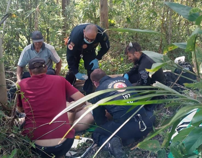Ele foi devidamente estabilizado para evitar maiores danos na coluna e levado de aeronave até o Hospital Nossa Senhora da Conceição em Tubarão.