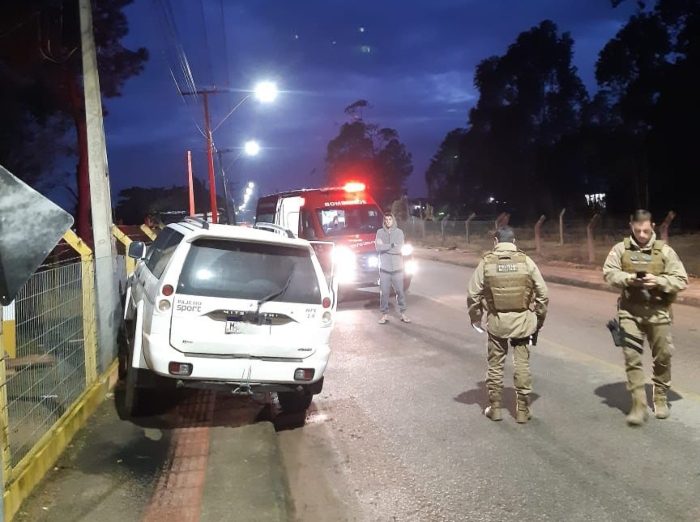 Um acidente de trânsito foi registrado nesta quarta-feira, dia 6, os Bombeiros Voluntários e a Polícia Militar foram acionados para atender a ocorrência. Um veículo Mitsubishi Pajero com placa de Tubarão, colidiu contra o muro de uma residência localizada no bairro Água Boa, em Jaguaruna.