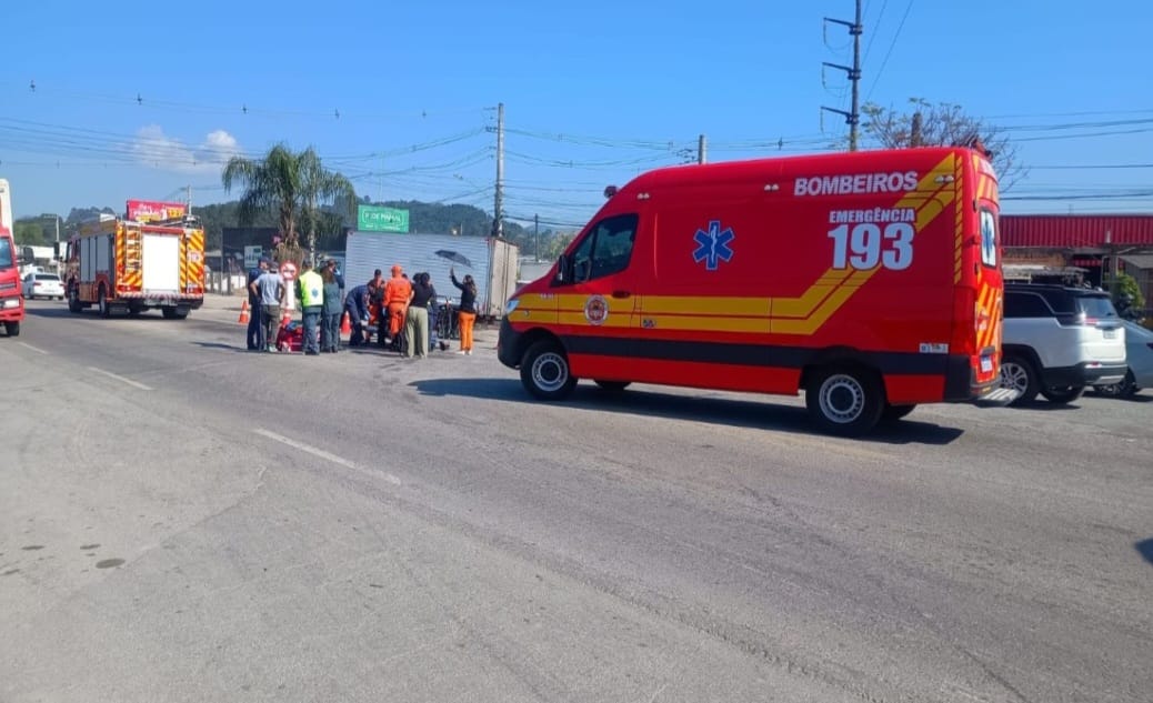 Uma motociclista ficou ferida após se envolver em uma colisão com um automóvel na BR-282, no município de Palhoça, na Grande Florianópolis, por volta das 11h desta terça-feira, dia 15. A mulher estava sem capacete no momento do acidente. Não foi informada a idade.