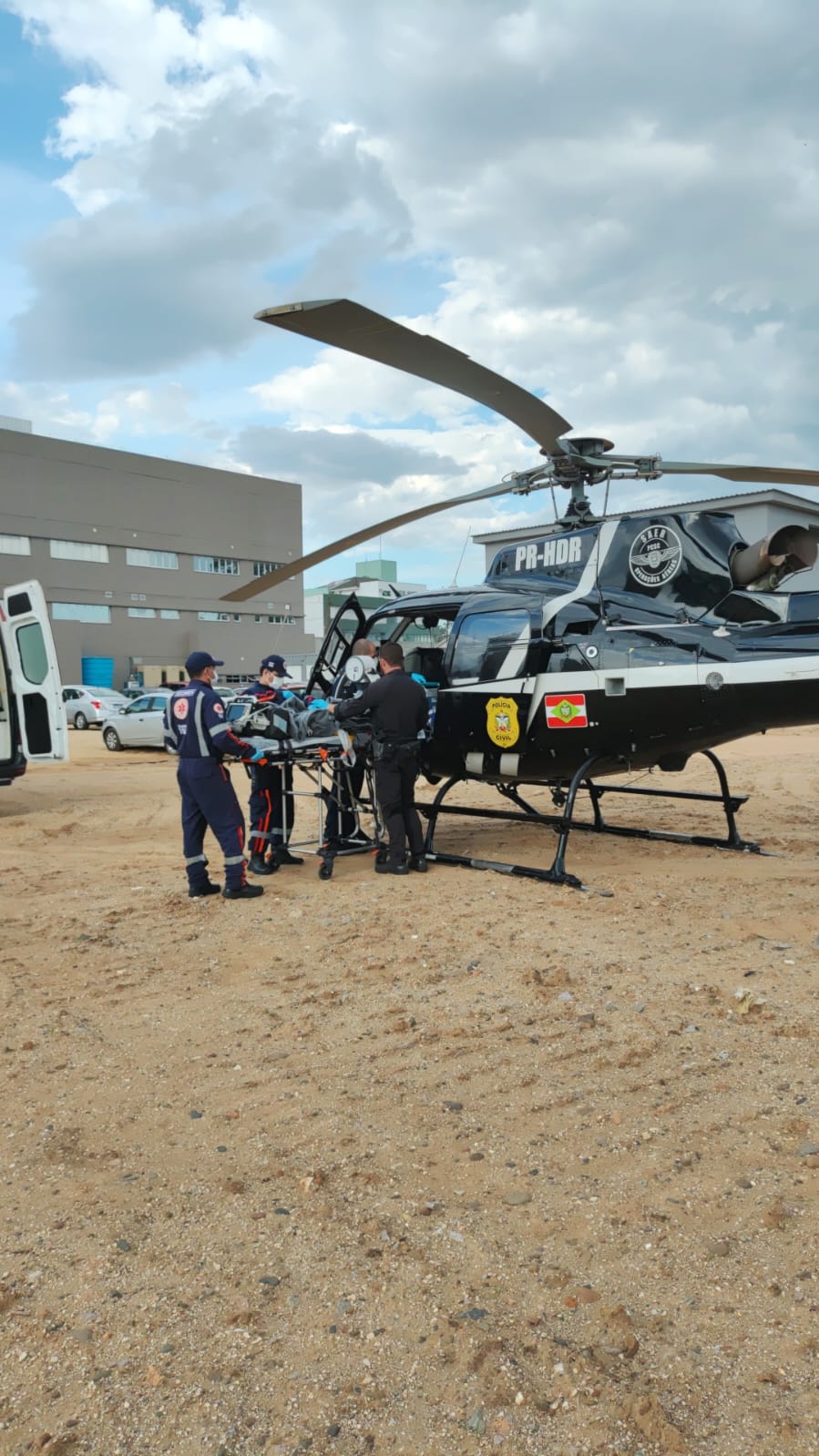 Após a estabilização do quadro do paciente, o mesmo foi conduzido de aeronave até a cidade de Criciúma, onde foi direcionado ao Hospital São José referência em trauma na região.