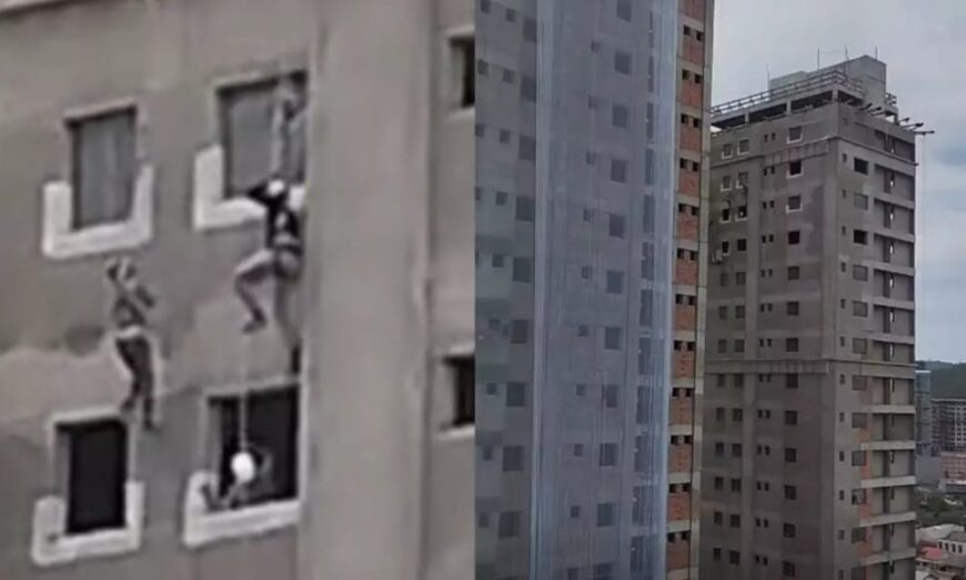 Na manhã desta quarta-feira, dia 5, um susto mobilizou moradores e equipes de emergência no bairro Perequê, em Porto Belo. Por volta das 10h, parte de uma estrutura — possivelmente de uma obra — cedeu, deixando um homem pendurado a vários metros do chão.