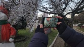 São Joaquim viveu um amanhecer congelante nesta terça-feira (24), com temperaturas na casa dos -6°C e um cenário que mais parecia saído de um conto de fadas. As cerejeiras do centro da cidade ficaram completamente cobertas de gelo, formando as chamadas árvores de cristal, uma das imagens mais impressionantes deste inverno rigoroso na Serra Catarinense.